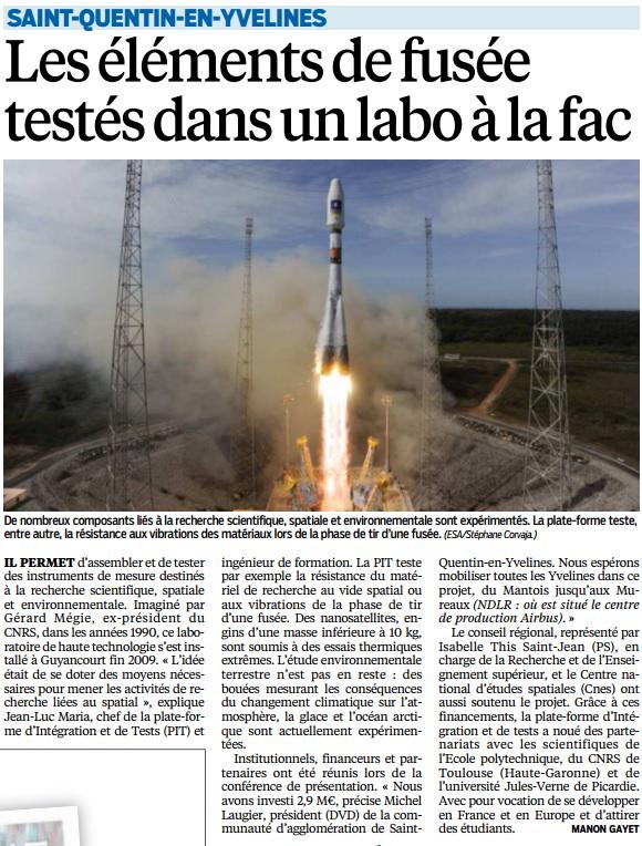 > Article "Les éléments de fusée testés dans un labo à la fac", Le Parisien [JPG - 110 Ko]